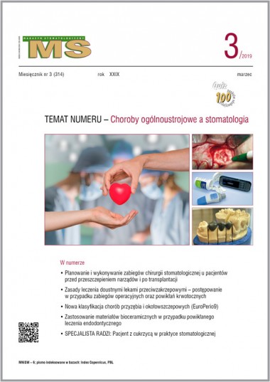 w marcu chcielibyśmy zainteresować Państwa postępowaniem chirurgicznym u pacjentów chorujących na niewydolność nerek, poddawanych dializom, chorych przed przeszczepieniem narządów i po transplantacji oraz pacjentów leczonych doustnymi lekami przeciwzakrzepowymi – stąd w TEMACIE MIESIĄCA zamieściliśmy artykuły prezentujące obecny stan wiedzy dotyczącej leczenia stomatologicznego pacjentów ze schorzeniami ogólnoustrojowymi.